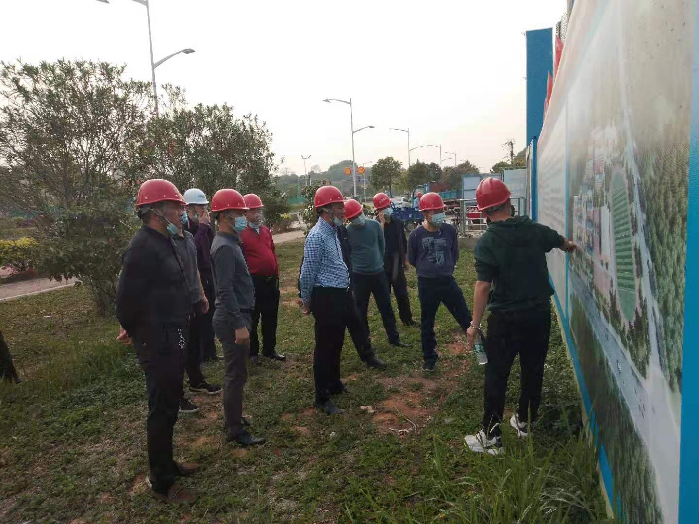 2021年3月9日,城建局祁局長、馬處長、陳科長和匯華集團董事長麥照華先生、常務(wù)副總經(jīng)理董桃元先生、副總經(jīng)理廖志峰先生等領(lǐng)導(dǎo)蒞臨企石七中項目現(xiàn)場指導(dǎo)工作。