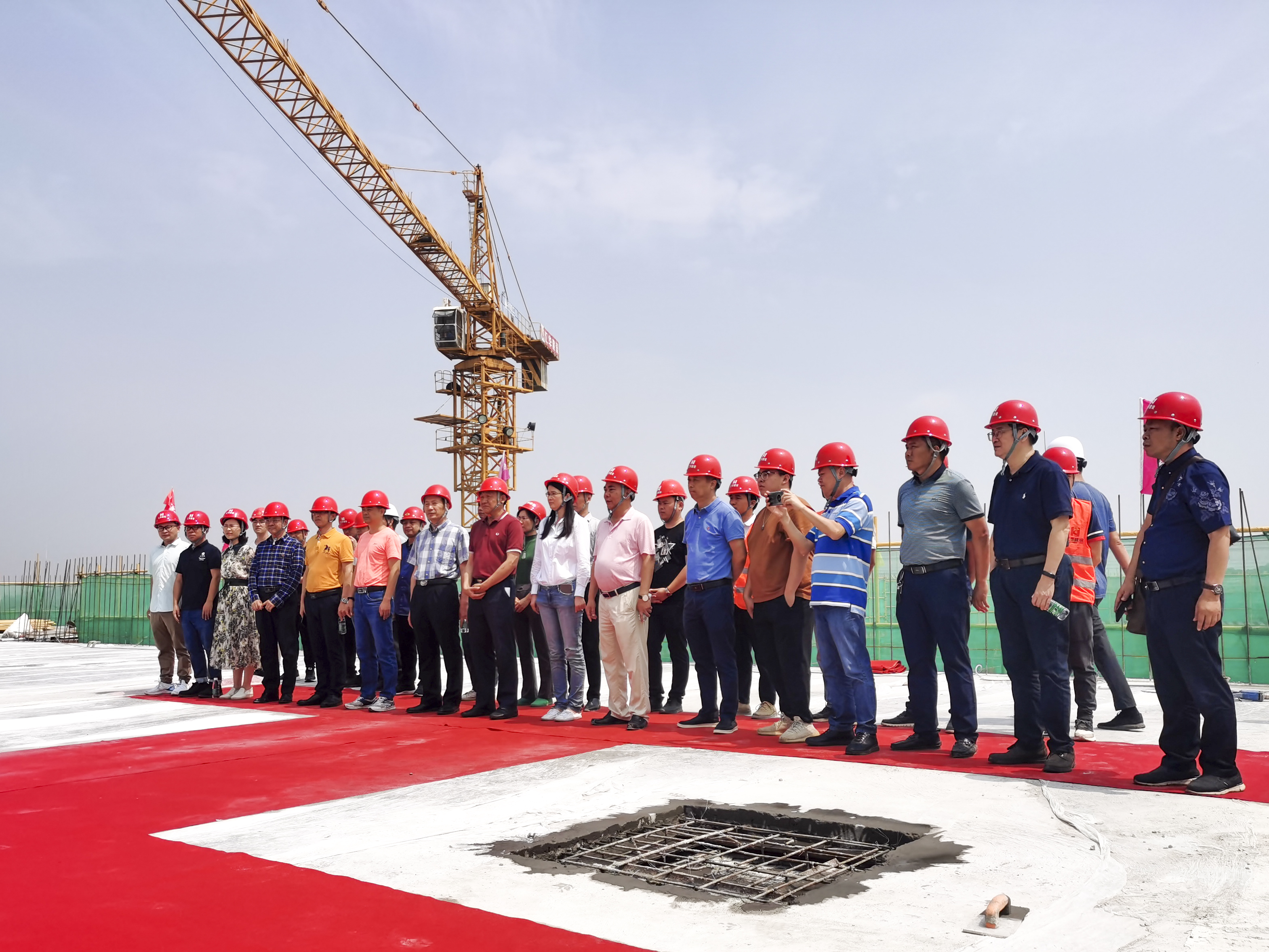 (封頂儀式現場) 東莞市城建局調研員馬文標先生、東莞市第七高級中學校長段文宏先生、廣東匯華建設集團有限公司董事長麥照華先生等領導先后致辭,隨后與廣東匯華建設集團有限公司副總經理廖志峰先生等領導一起出席封頂儀式。